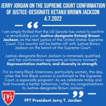 PHILADELPHIA--"I am simply thrilled that the US Senate has voted to confirm a remarkable jurist, Justice-designate Ketanji Brown Jackson, as the next justice of the United States Supreme Court. Our country will be better off with Justice Brown Jackson on the bench of the Supreme Court.