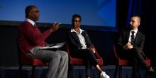 From left, Kareem Weaver, Tanji Reed Marshall and Alonso Jaque-Pino touted the science of reading.