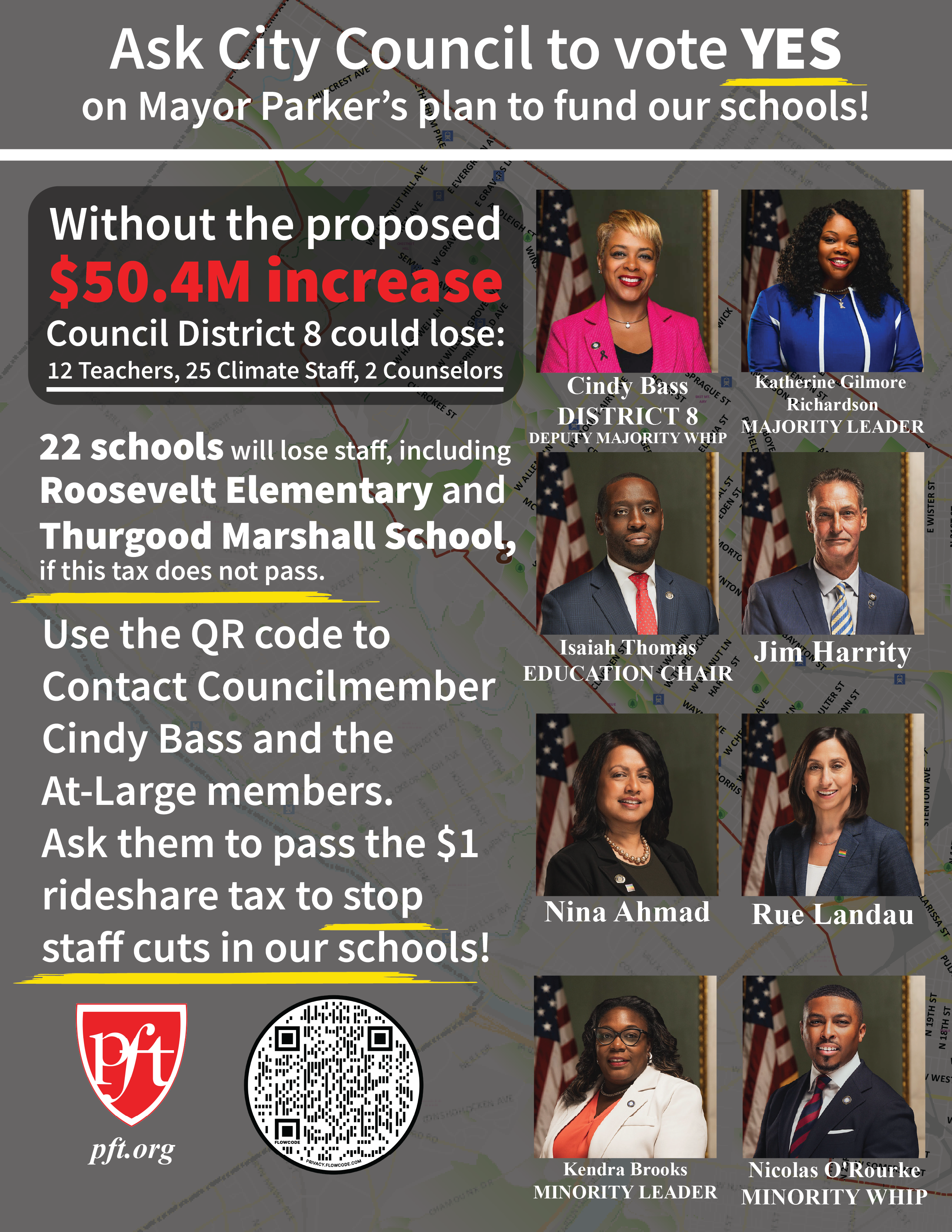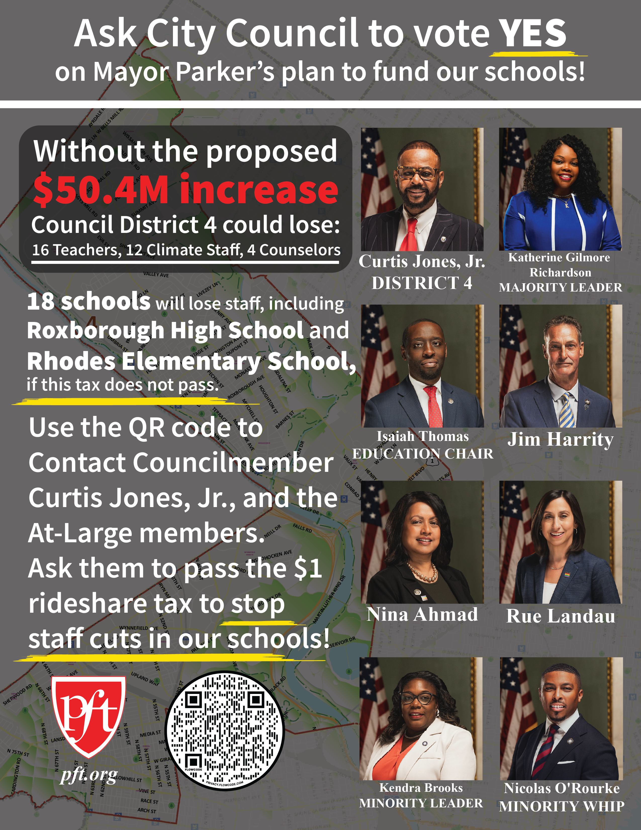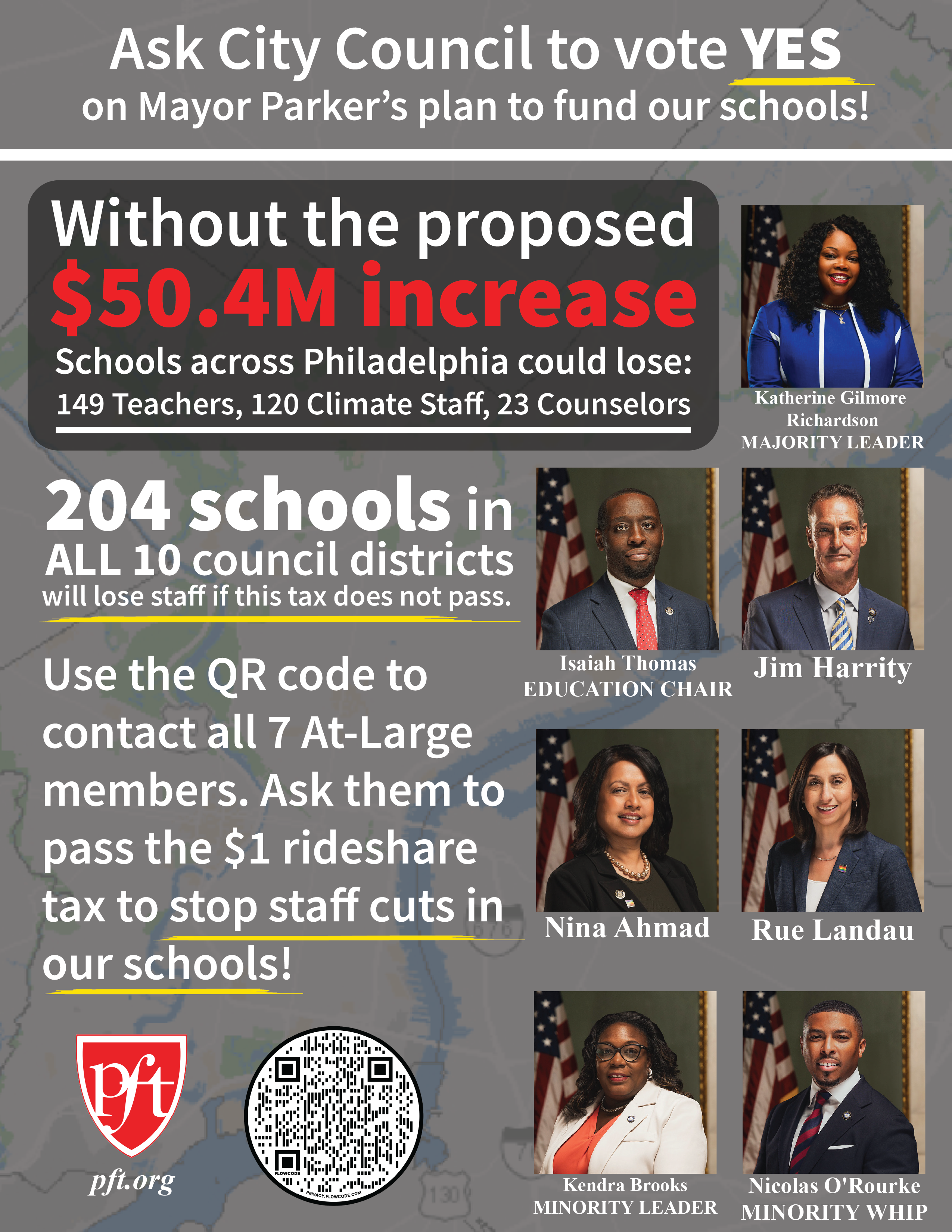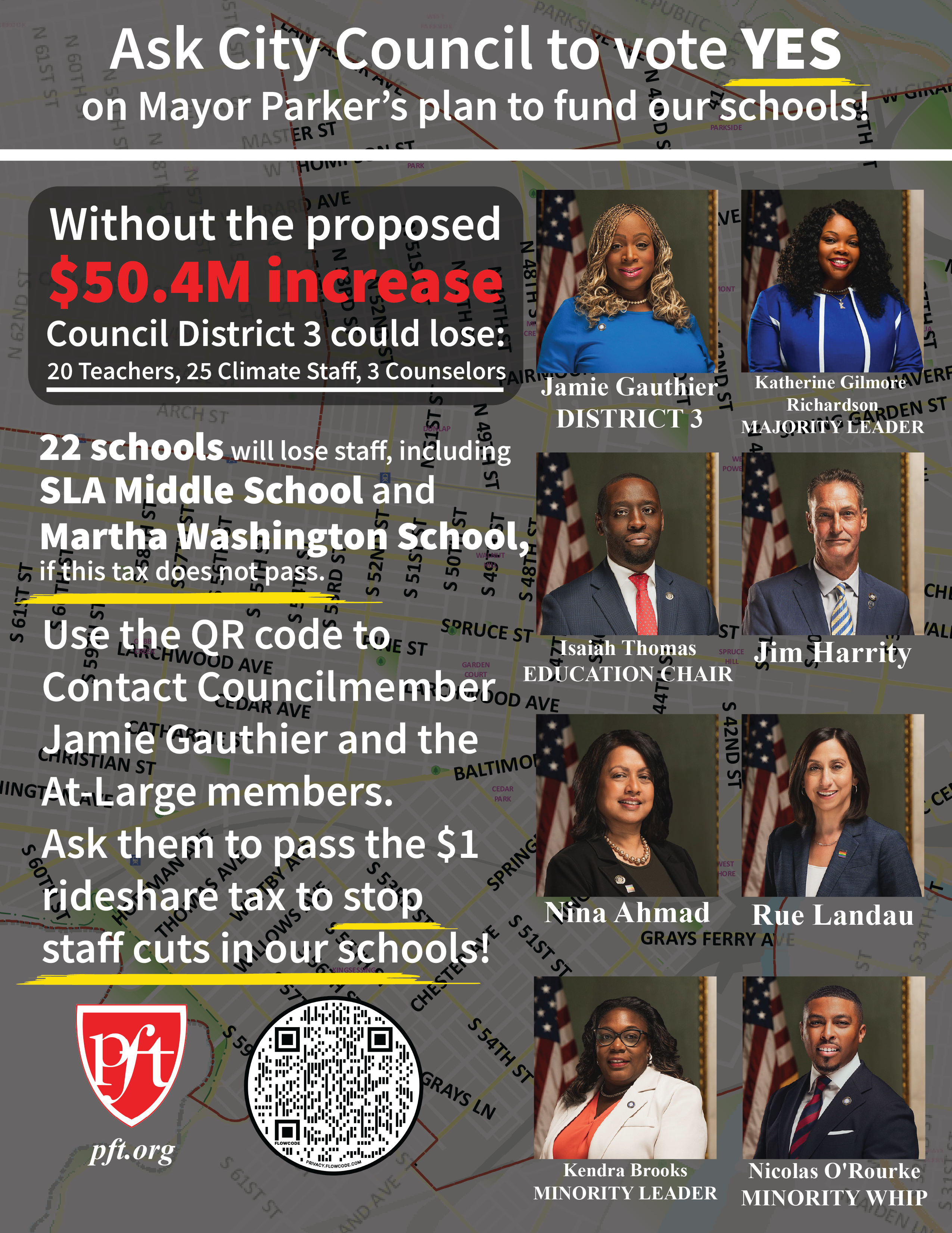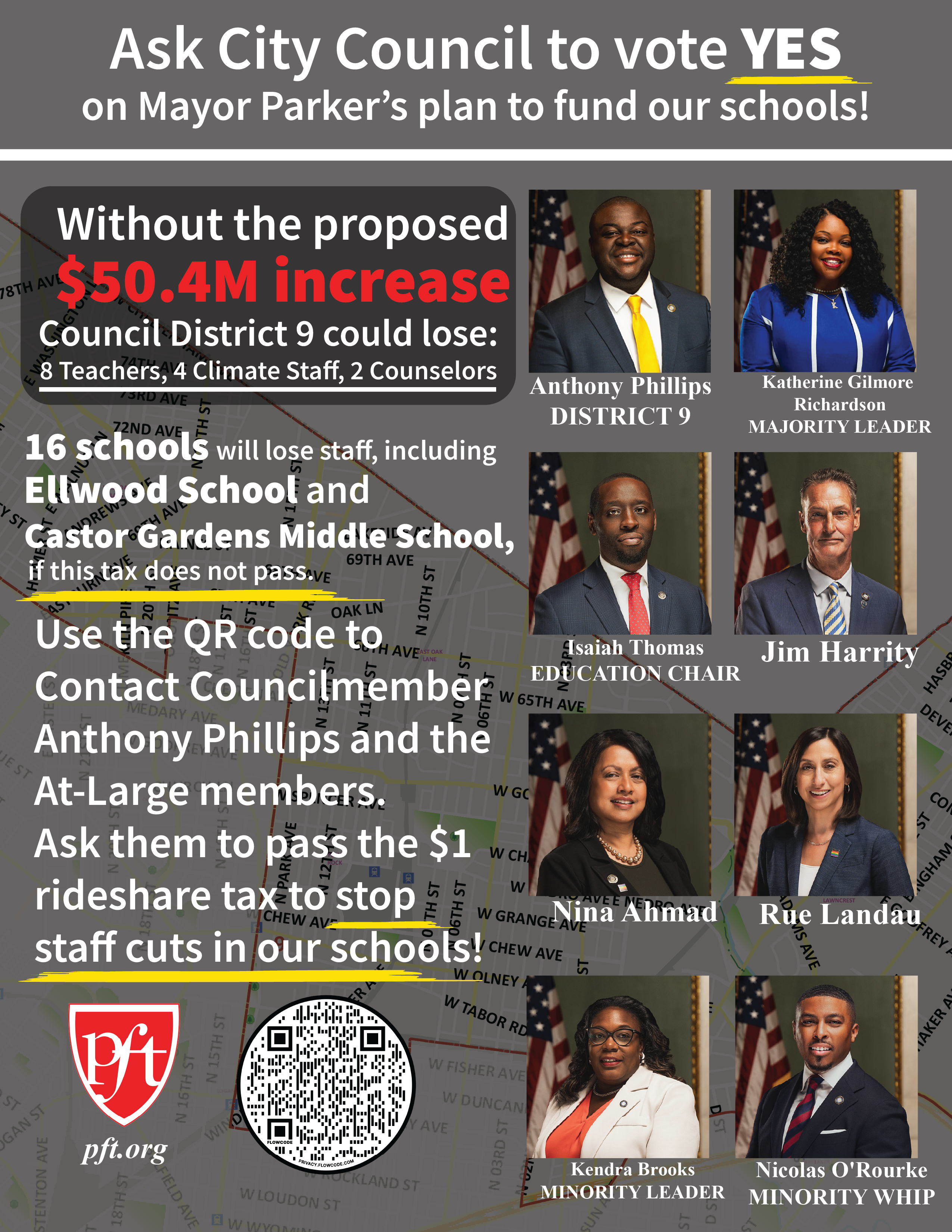 Mayor Cherelle Parker has proposed a $1 rideshare tax to save 340 public education jobs that will otherwise be cut. Amid a nationwide educator staffing shortage, we cannot allow even deeper cuts to classrooms.