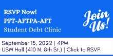 We are partnering with AFTPA & AFT to host an in-person student debt clinic where you will be able to learn more about options available to you!