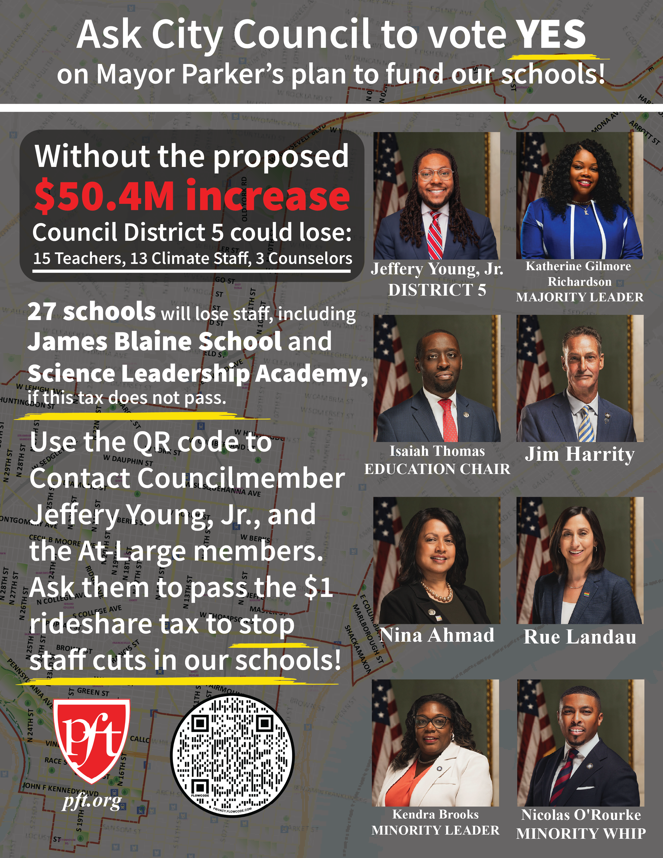 Mayor Cherelle Parker has proposed a $1 rideshare tax to save 340 public education jobs that will otherwise be cut. Amid a nationwide educator staffing shortage, we cannot allow even deeper cuts to classrooms.