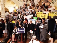 PA legislators, college students and union leaders rallied in the Capitol Rotunda on Wednesday urging lawmakers to approve a plan that would provide free college education for thousands of students.