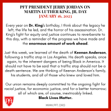 "Our union remains deeply committed to the ongoing fight for racial justice, for economic justice, and for a better tomorrow; all of which are, of course, inextricably linked.