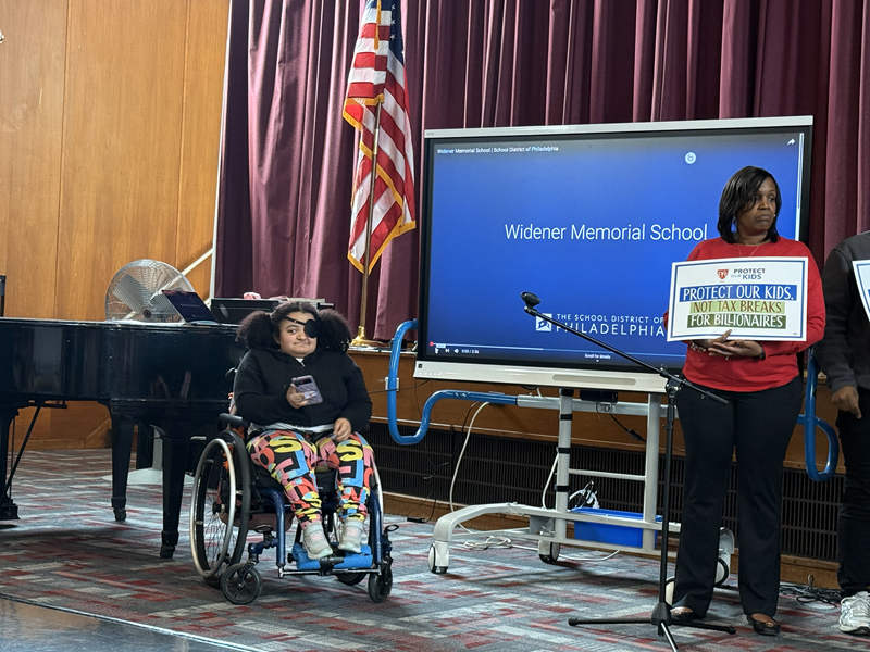 Elected officials including PA Reps. Andre Carroll and Darisha Parker and City Council Majority Leader Katherine Gilmore Richardson and Minority Leader Kendra Brooks joined school officials, labor leaders, and AFT members for a press conference at Widener Memorial School – the only public school in the Commonwealth solely dedicated to supporting special education and diverse learners. The comprehensive education and services offered by Widener – with support from the Department of Education – helps ensure students thrive and go on to higher education, fulfilling careers, and lives filled with purpose and self-determination.