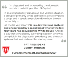 PHILADELPHIA— In response to the coup attempt in Washington, D.C., PFT President Jerry Jordan issued the following statement: