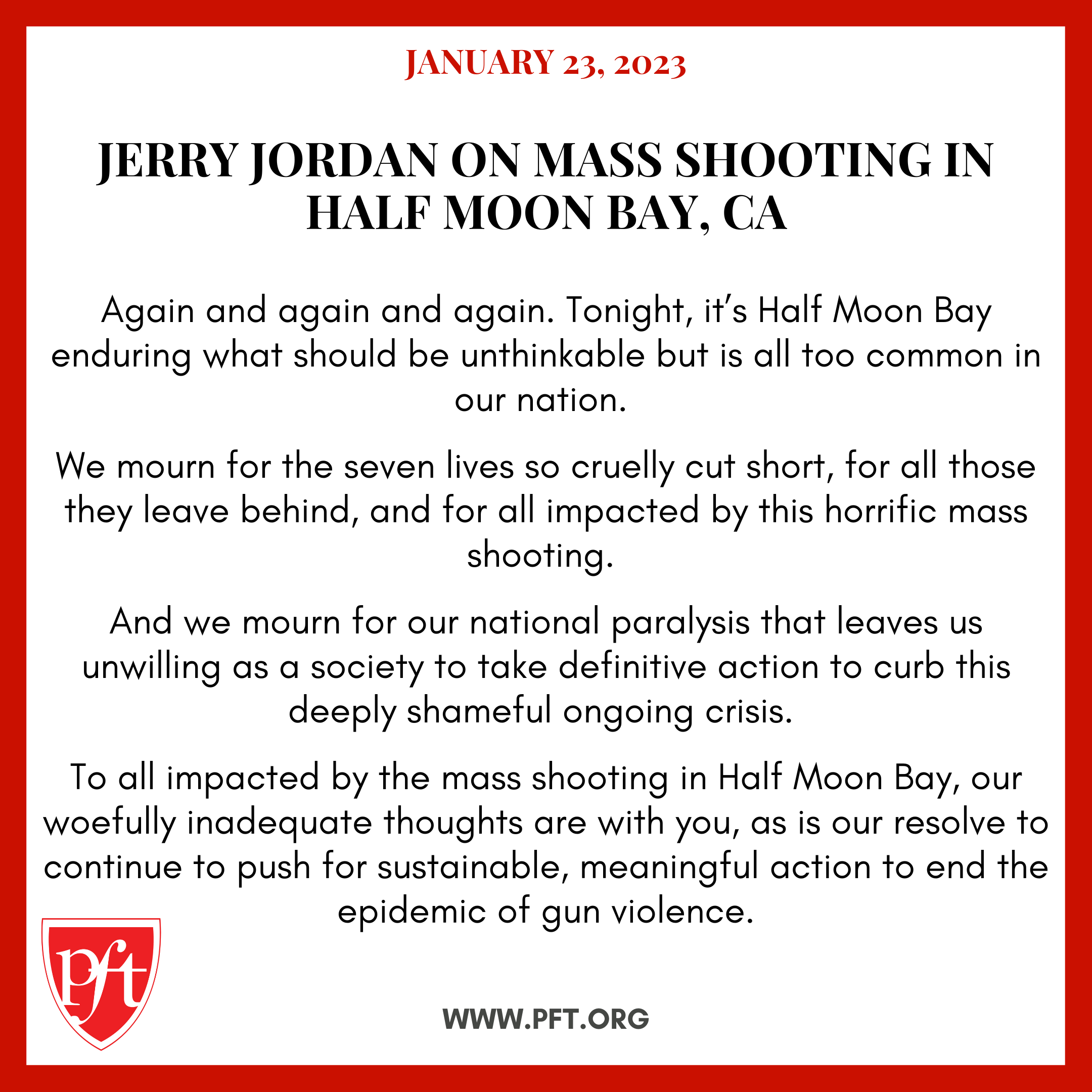 "To all impacted by the mass shooting in Half Moon Bay, our woefully inadequate thoughts are with you, as is our resolve to continue to push for sustainable, meaningful action to end the epidemic of gun violence."